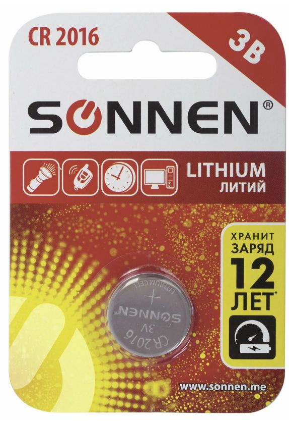 Батарейка таблетка SONNEN Lithium CR2016/ цена за 1 шт/