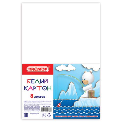 Картон белый А4 8л немелованный Пифагор 127049 /60/60