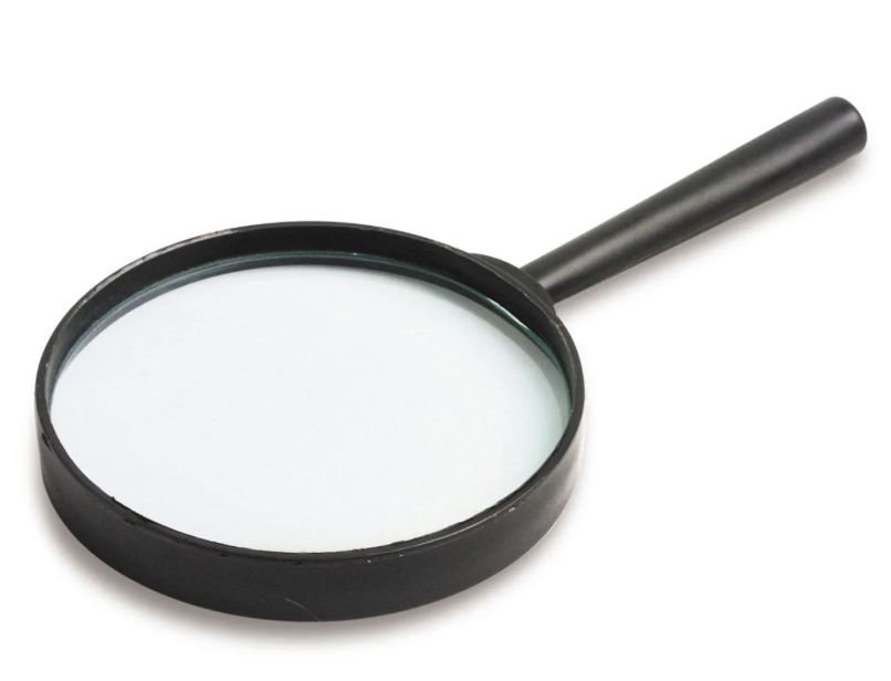 Лупа канцелярская диаметром 90 мм увеличивает объект в 5 раз.