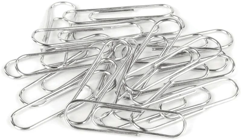 Скрепки изготовлены из металла с никелированным покрытием. Имеют удобную закругленную форму, что позволяет надежно скреплять документы. Размер одной скрепки — 33 мм, 100 штук в упаковке. Производство - Китайская Народная Республика